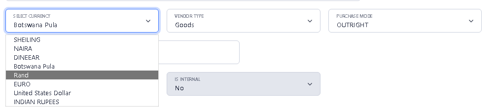 • Currency of Vendor