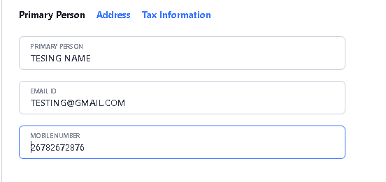 > After type vendor name and select currency, for others details like Primary Person, Email or Mobile Number, please enter on Primary Person option.