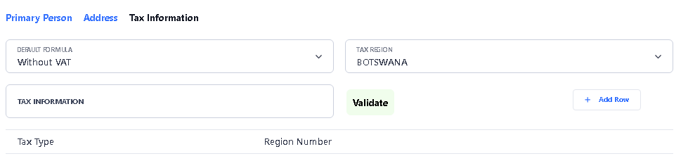 • Tax Region of Vendor
