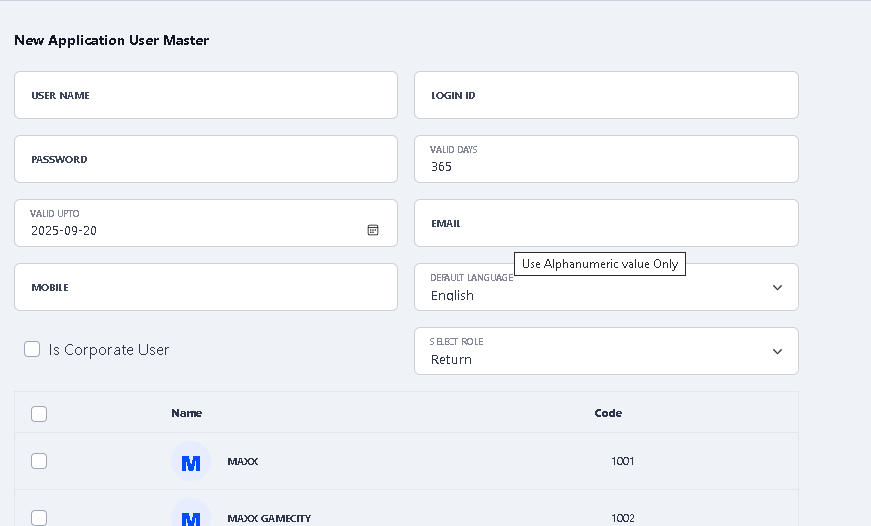 > Navigation: Admin > User Management > Application User Master.