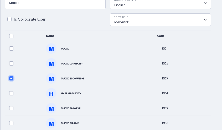 > Now Select the Organization for which you want to create this user by clicking on the check box.