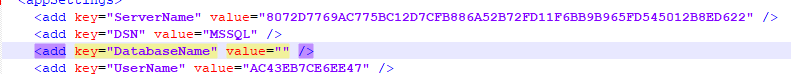 - Change any Key Value from this Application Configuration as below I have deleted database value
