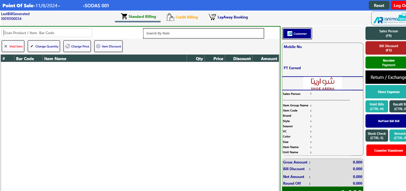 >Navigation : Point of Sales >Point of Sale >Retail Billing.