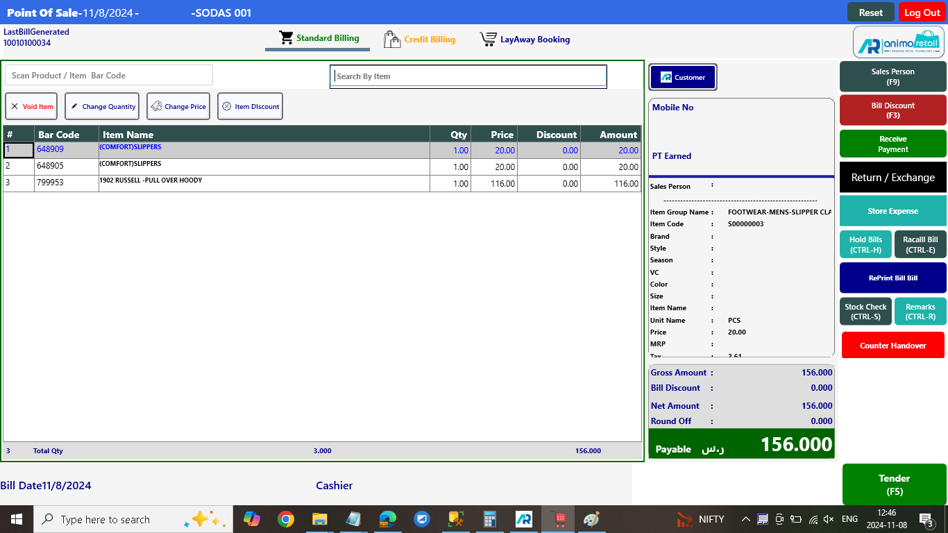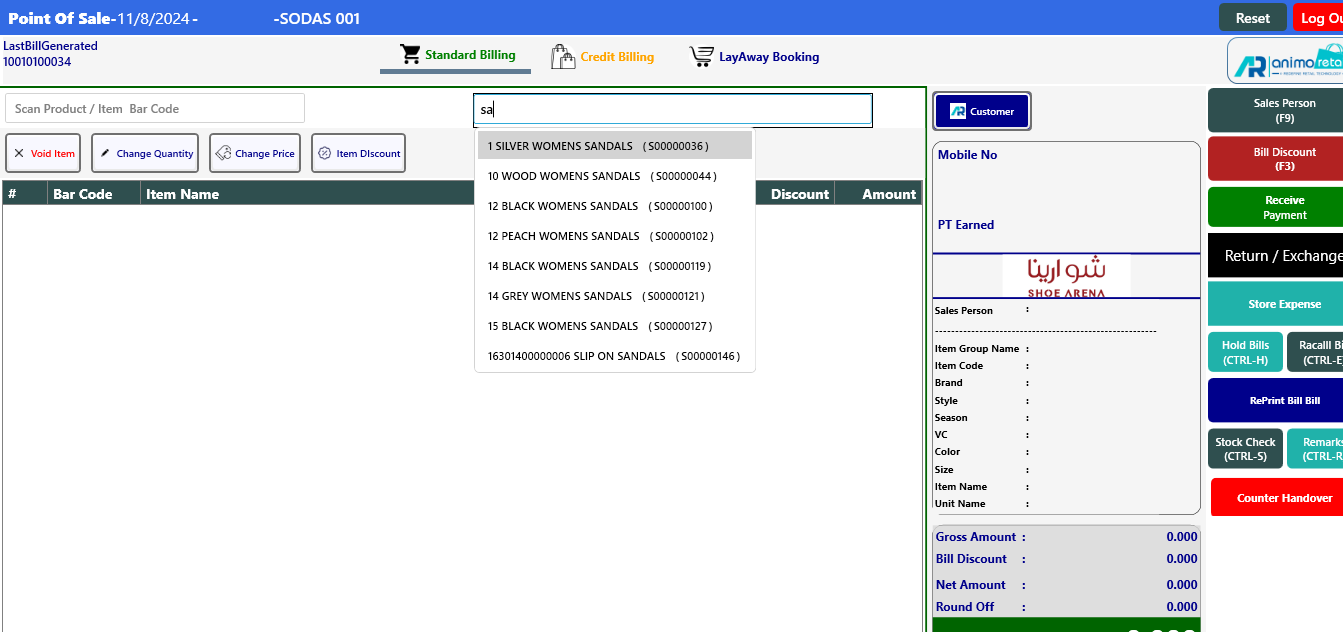> Otherwise Start scanning in Scan Product / Item Bar Code option, if you don’t know the barcodes then you can use Search by Item option and type the Item Name or Itemcode here and you can see the list appear and then you can select items from the list window