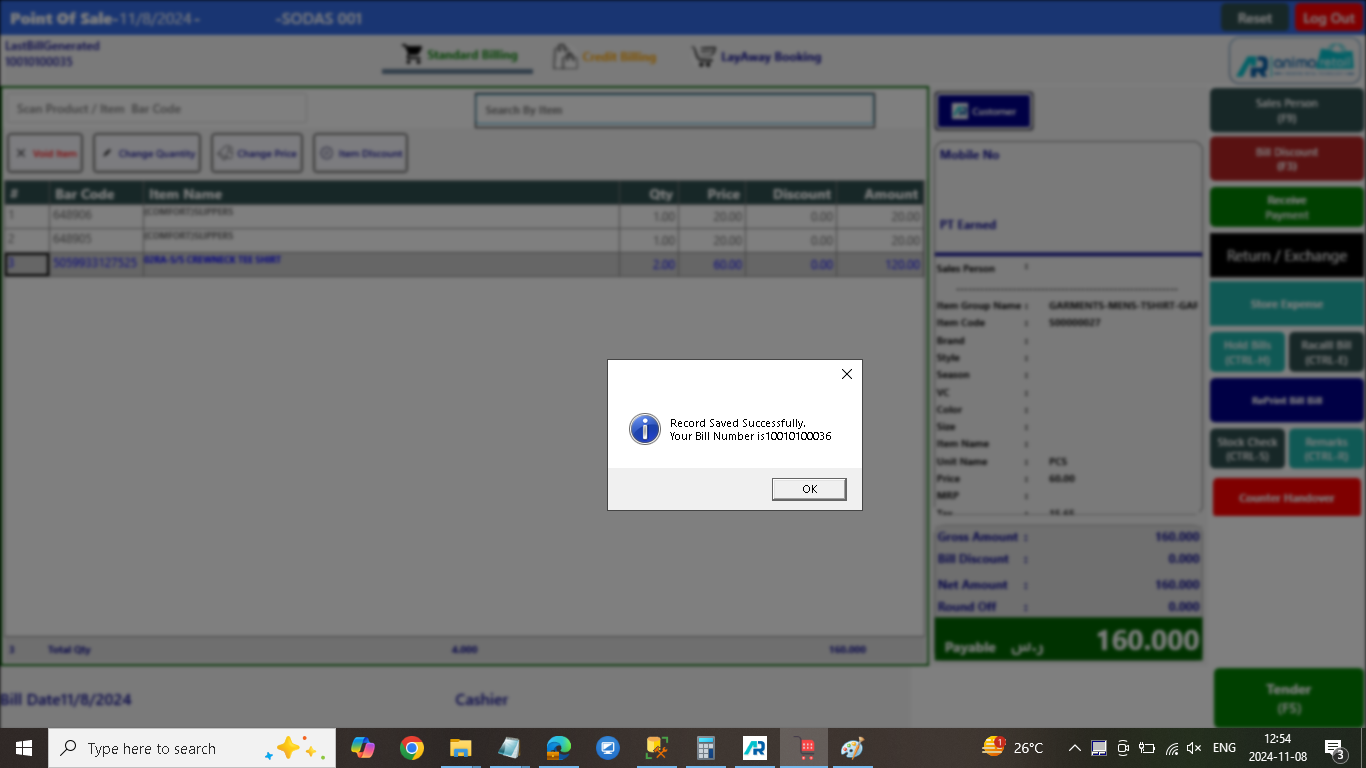 > Now Press F10 or click on Print button to Save and Print the Standard bill.
