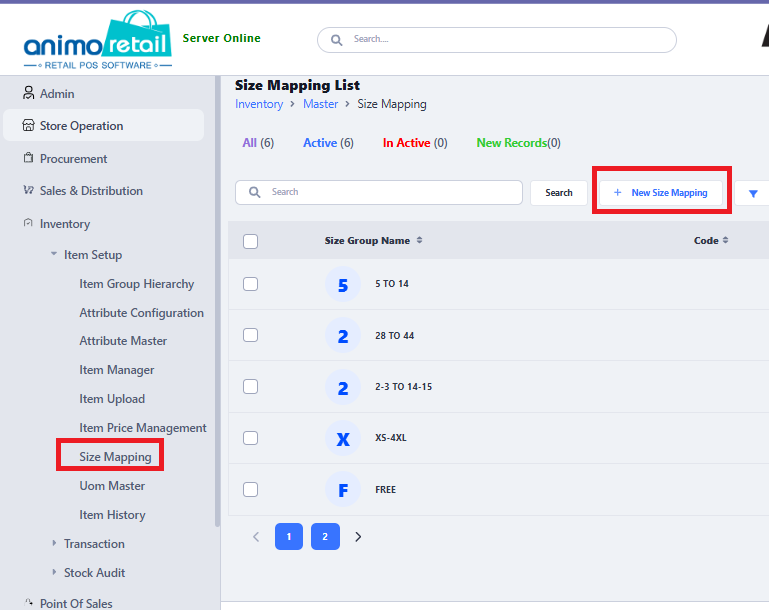 - To manage size group, ensure all sizes are already made in attribute 10 in Item Setup, Navigate to Attribute Master to verify and create.