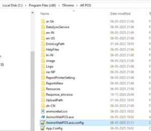 1. InstallPath\ITAnimo\AR POS\AnimoWebPOS.exe.config