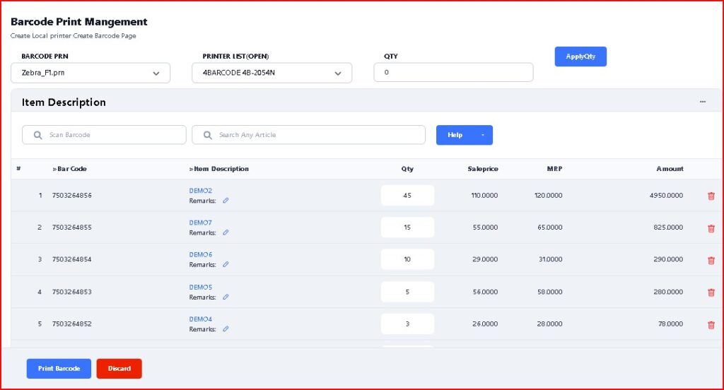 SCAN BARCODE – In this, you can scan the barcodes which you want to print, and after scanned all, click on Print Barcode button.