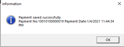 - System will show the saved document number, press OK button