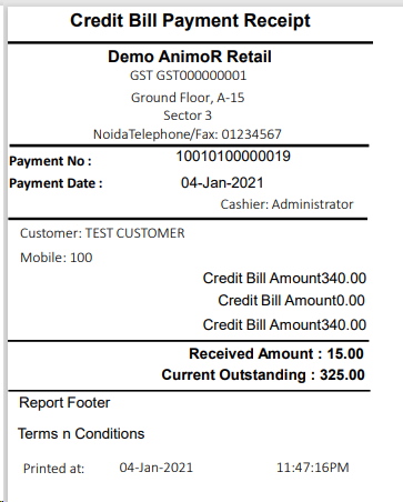 - Credit Bill Payment Receipt Print Out will come to the printer or PDF