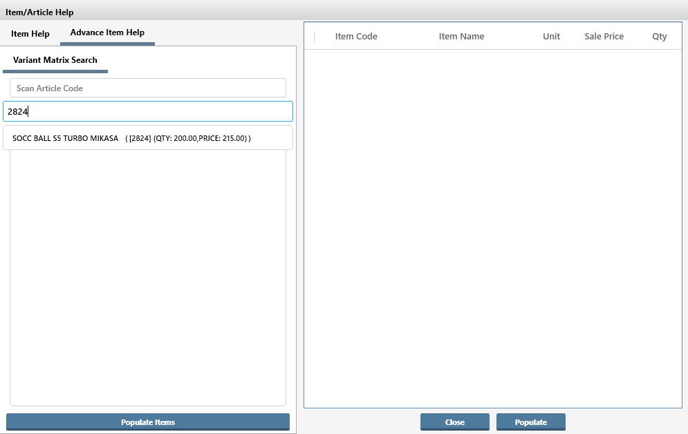 - Scan the item or select the article