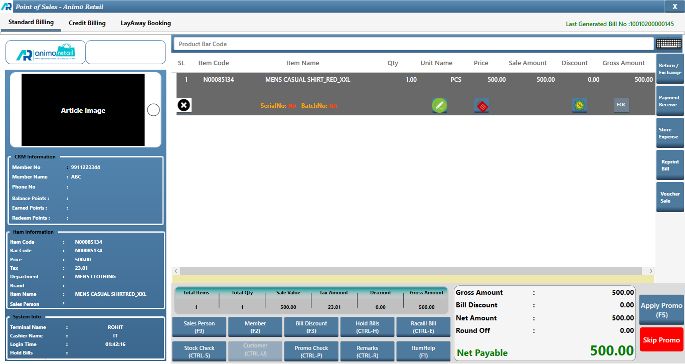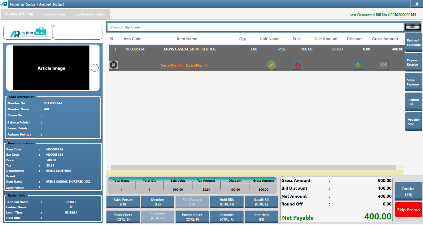 >Navigation : Store Operation >Point of Sale > Billing.