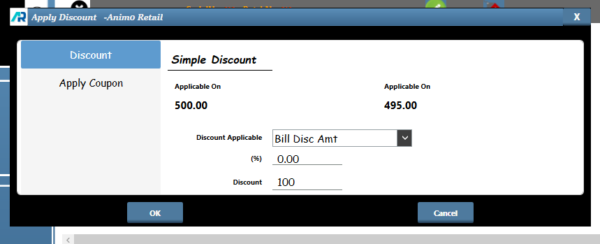 >Select option and enter discount amount, then click ok button to apply discount.
