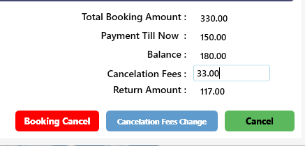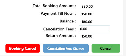 > After changing the Cancelation Fees Value Return Amount will be changed as mentioned below.
