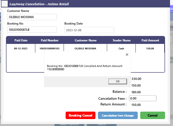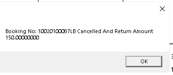 > Press on Booking Cancel button to cancel the order and return the money to customer.