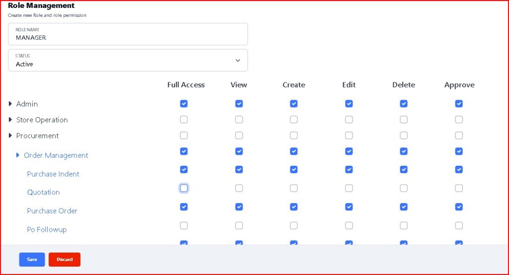 > Role Master – In this you can create different roles according to permissions, like manager, warehouse, cashier like this.